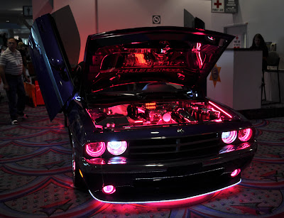 If you wanted to impress everyone at the evening car cruise, this oughta work, color shifting LEDs under the car and under the hood You On Here » Challenger , SEMA 2010 » If you wanted to impress everyone at the evening car cruise, this oughta work, color shifting LEDs under the car and under the hood